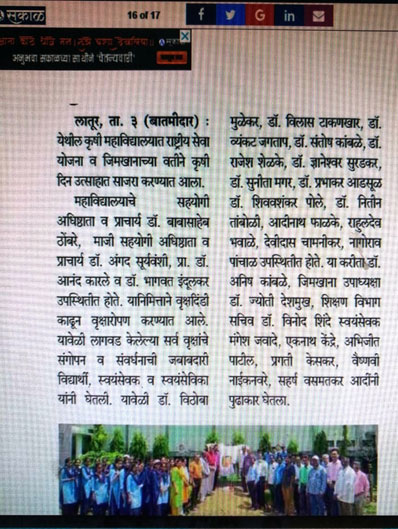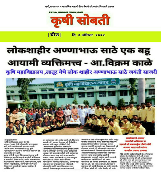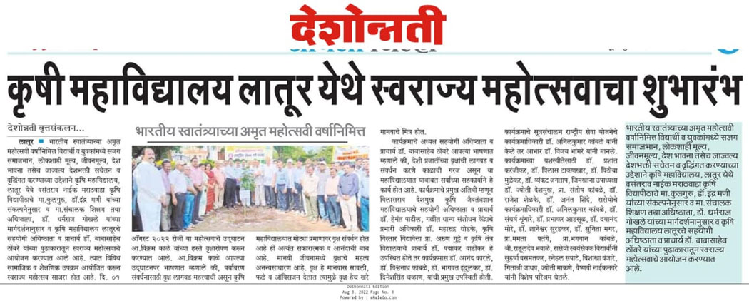 कृषि महाविद्यालय, लातूर - ४१३ ५१२(महाराष्ट्र)